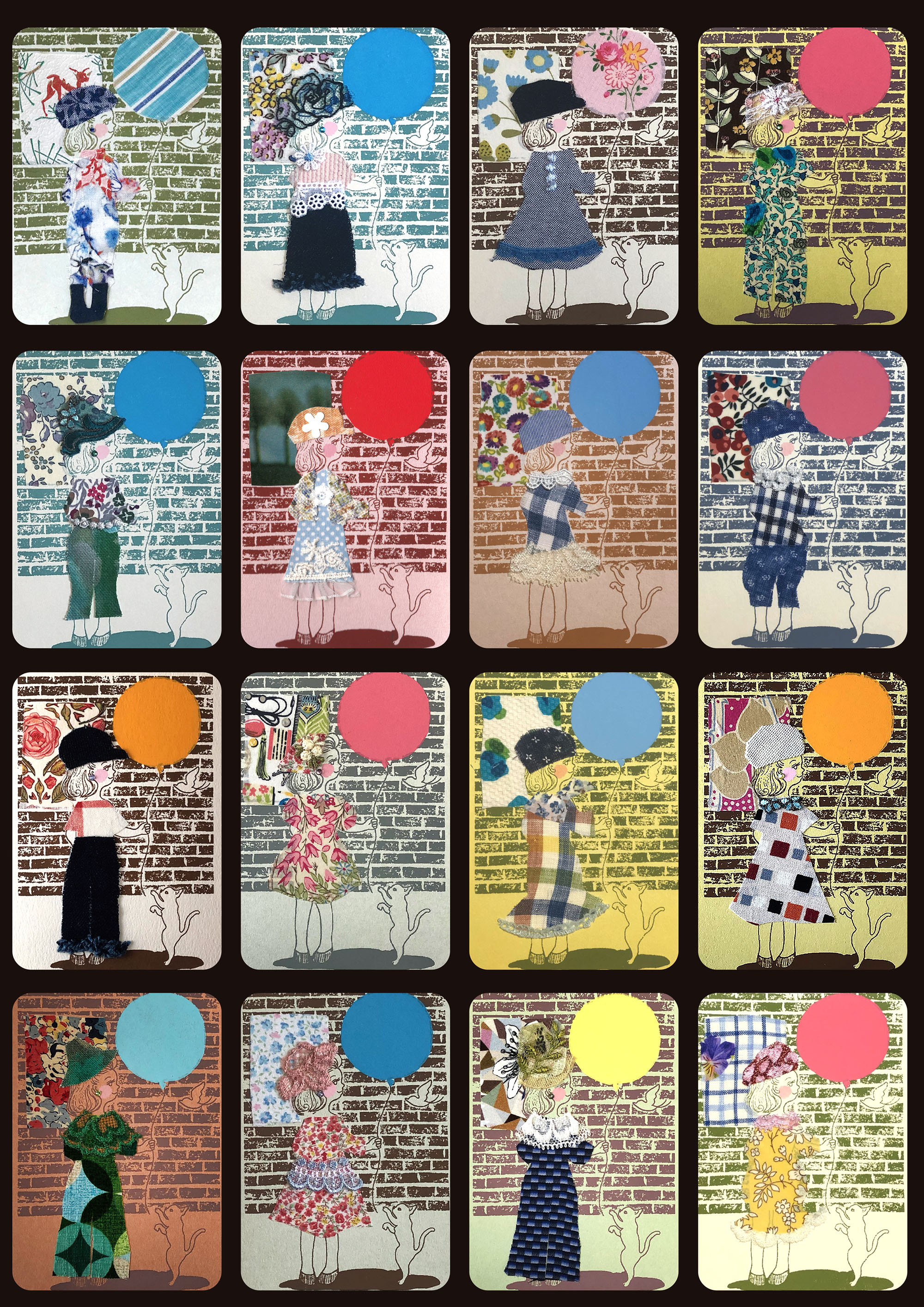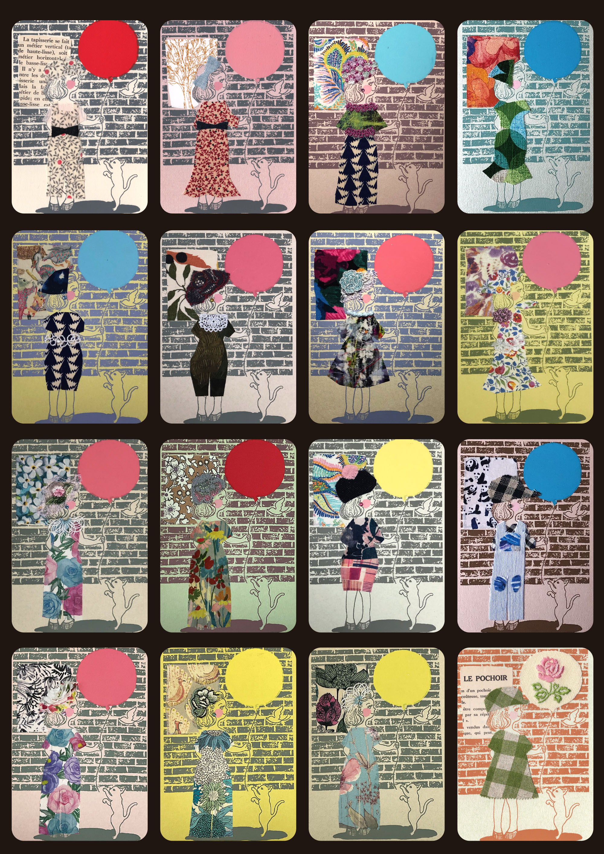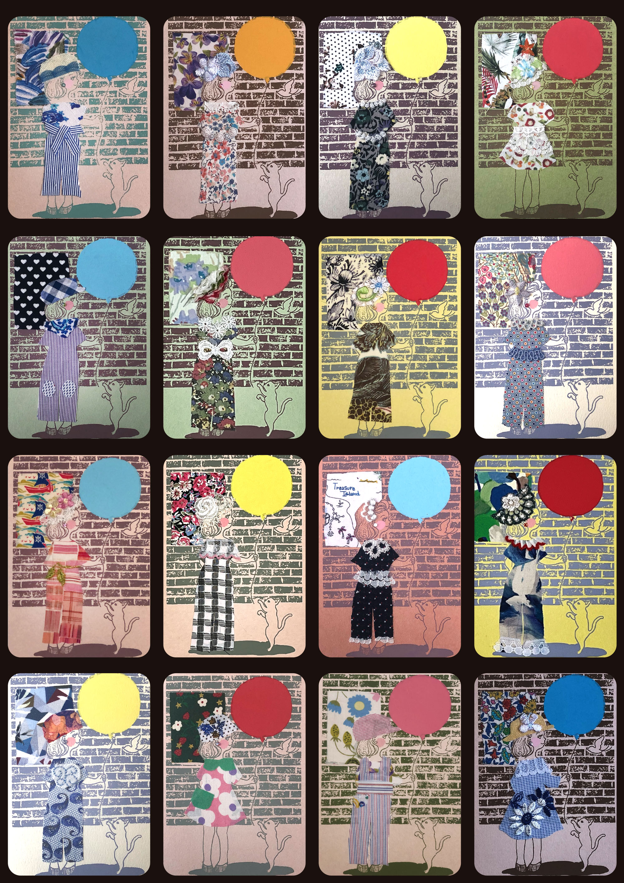 過去に制作したコラージュカードです(2019〜2023.4) Title " Balloon Girl/風船少女 " 紙とシルクスクリーンや布...様々な素材のコラボ作品です Balloon Girl
