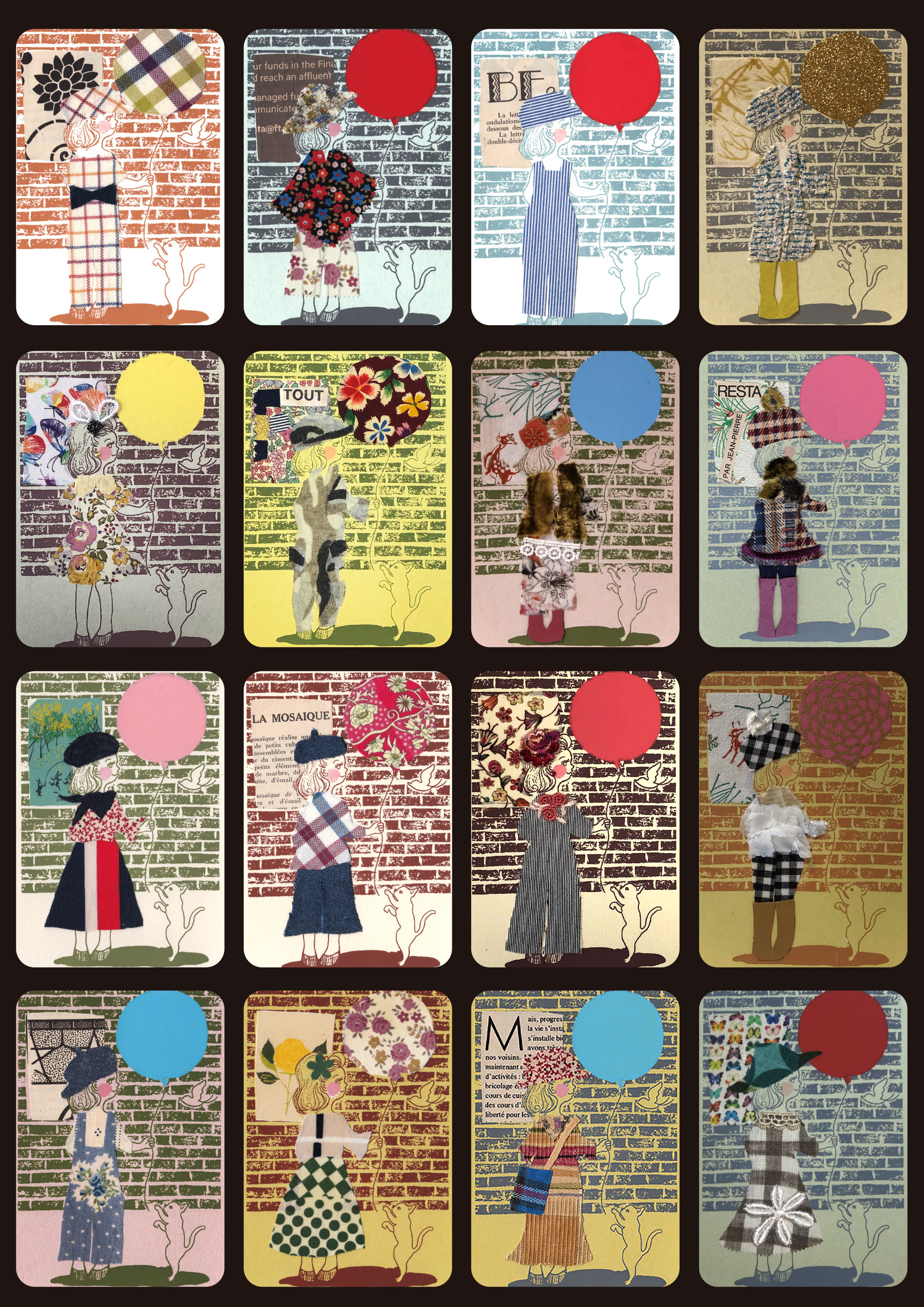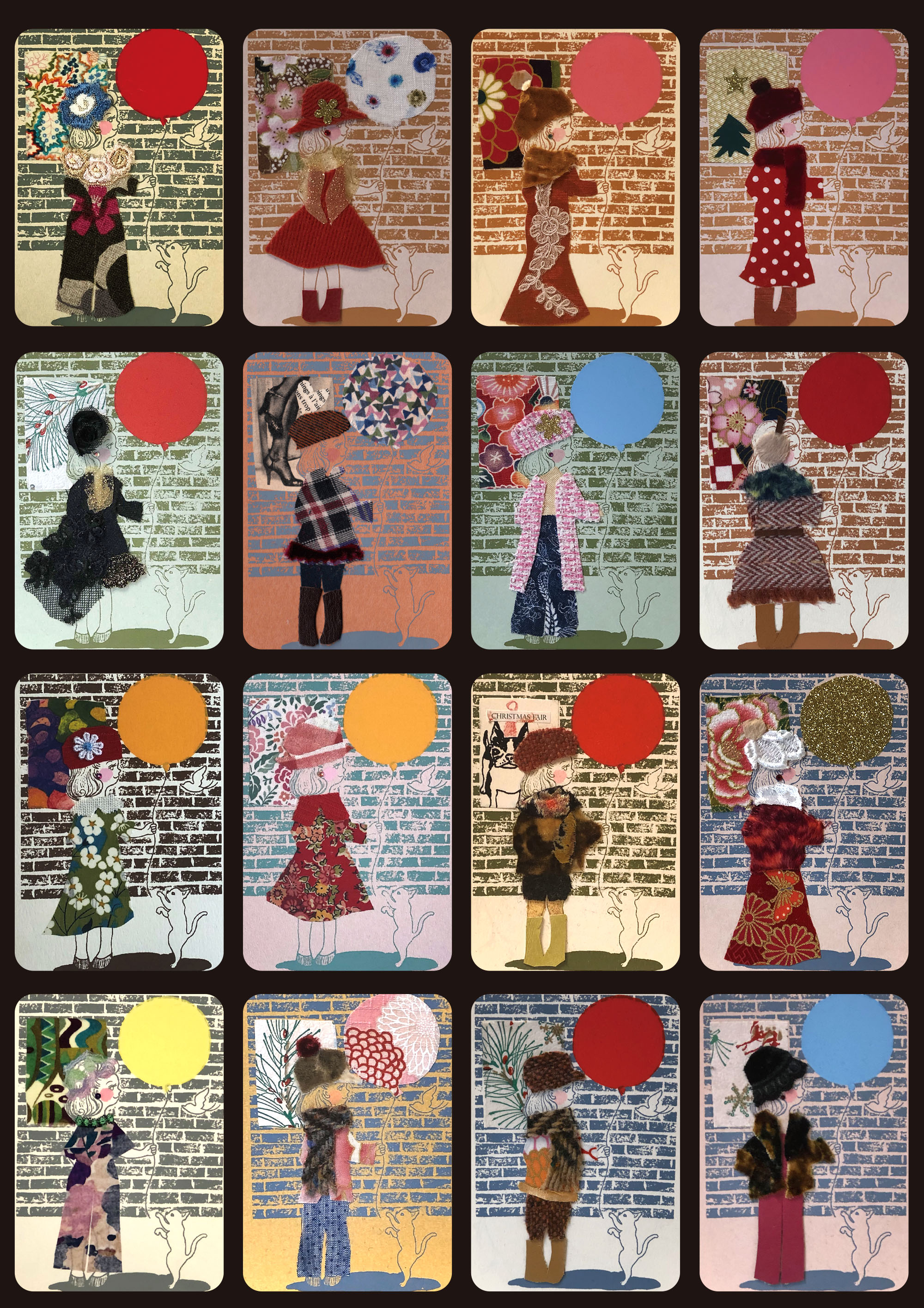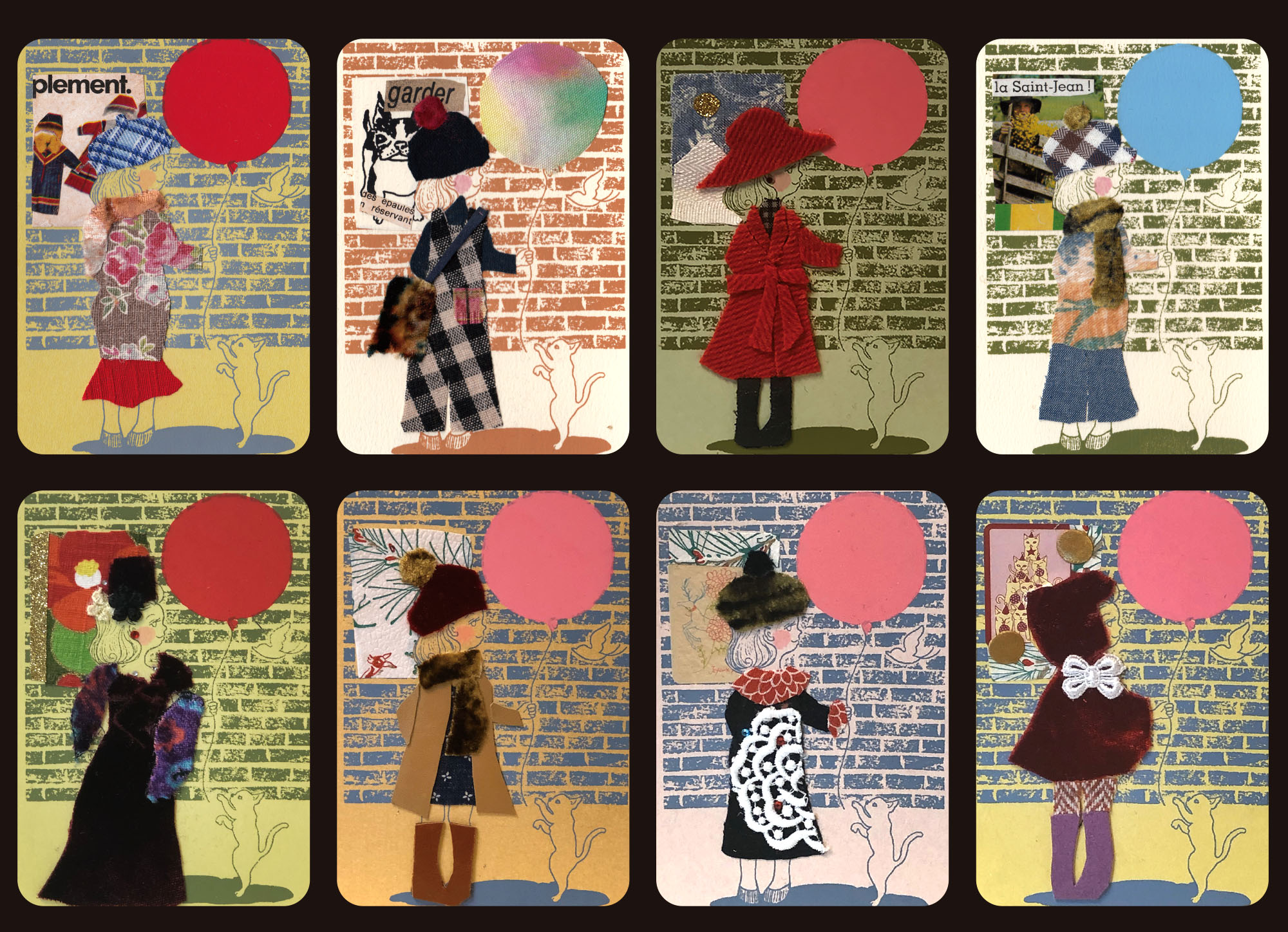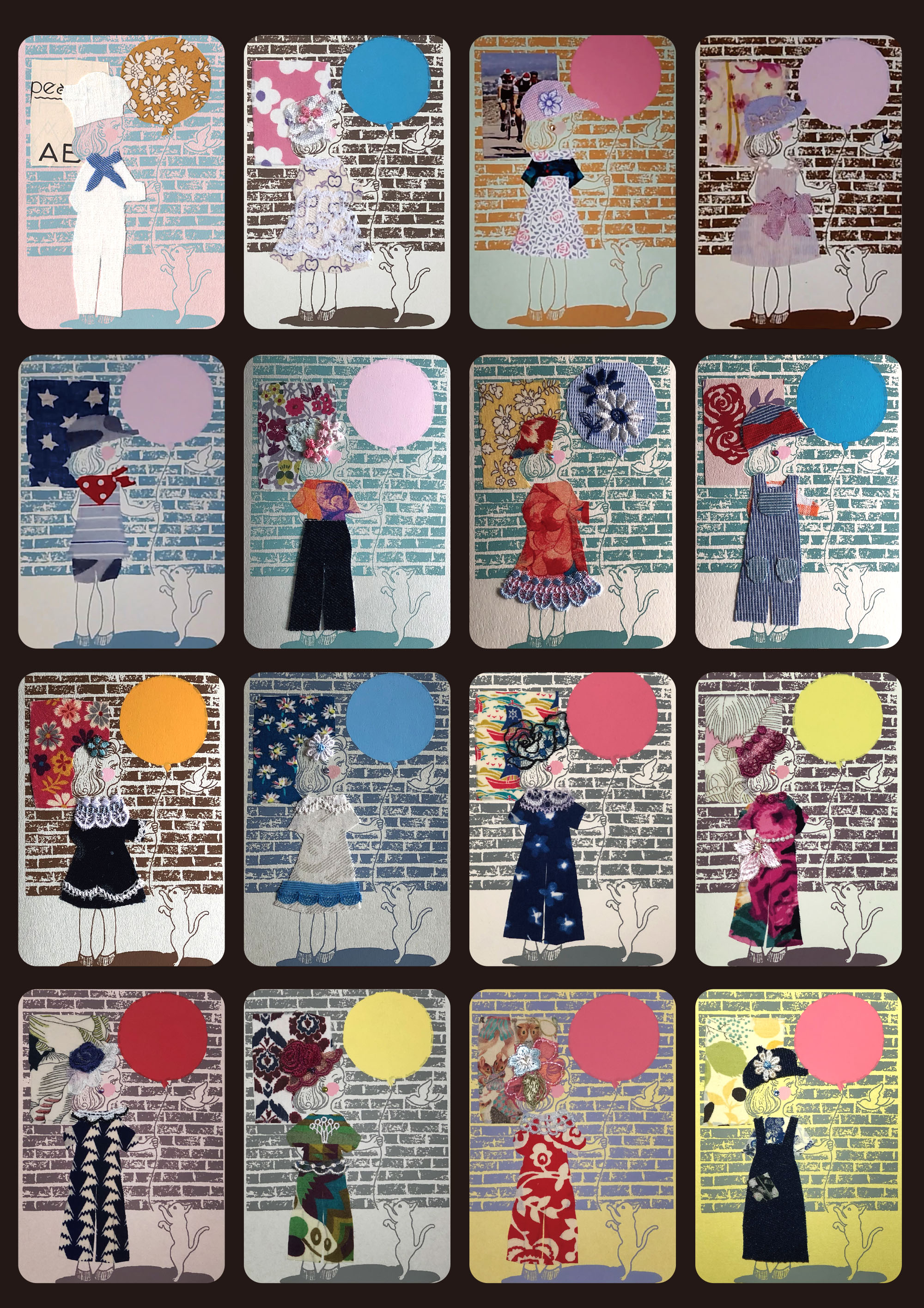 過去に制作したコラージュカードです(2019〜2023.4) Title " Balloon Girl/風船少女 " 紙とシルクスクリーンや布...様々な素材のコラボ作品です Balloon Girl